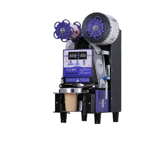 เครื่องซีลกระป๋องไฟฟ้าระบบอัตโนมัติเครื่องทำกระดาษสภาพใหม่สำหรับชาบับเบิ้ลชานมสำหรับร้านขายเครื่องดื่ม