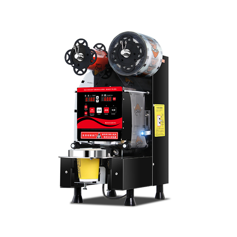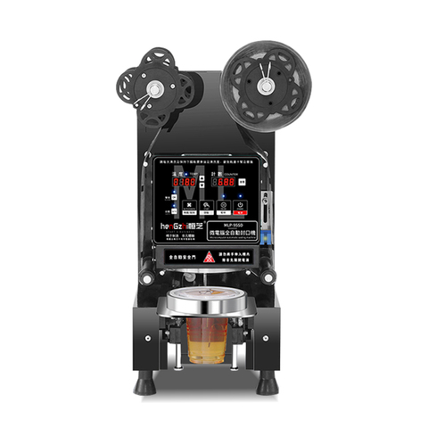 เครื่องปิดผนึกถ้วยชานม Boba ไฟฟ้าอัตโนมัติเต็มรูปแบบสำหรับบรรจุภัณฑ์เครื่องดื่ม